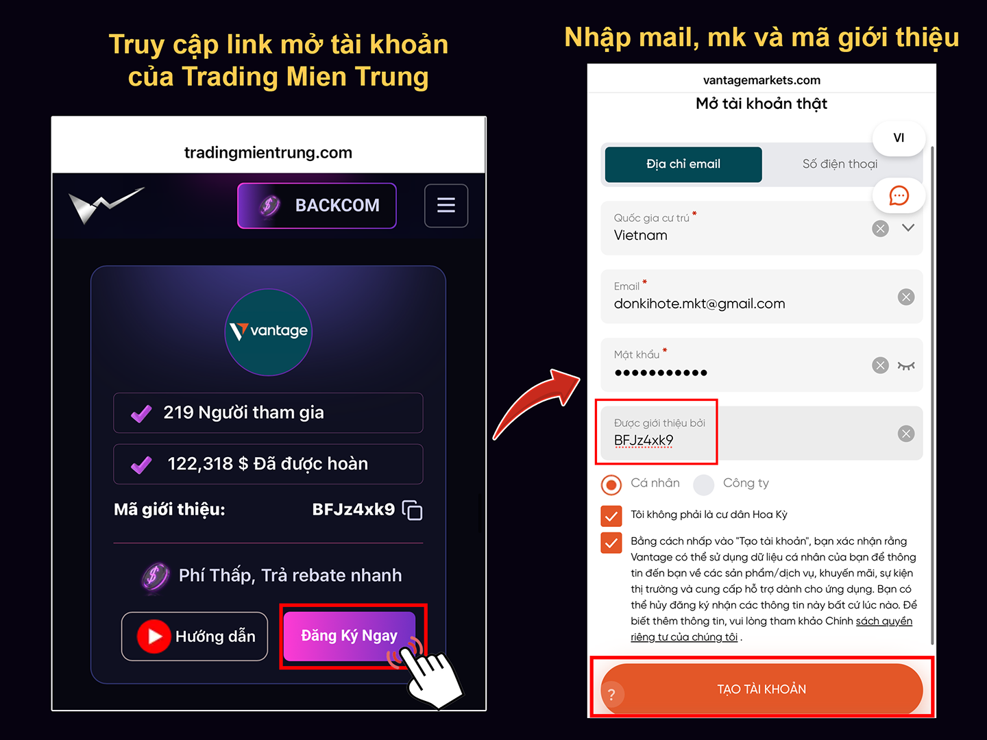 - Truy cập theo link đăng ký Trading Mien Trung Tại đây