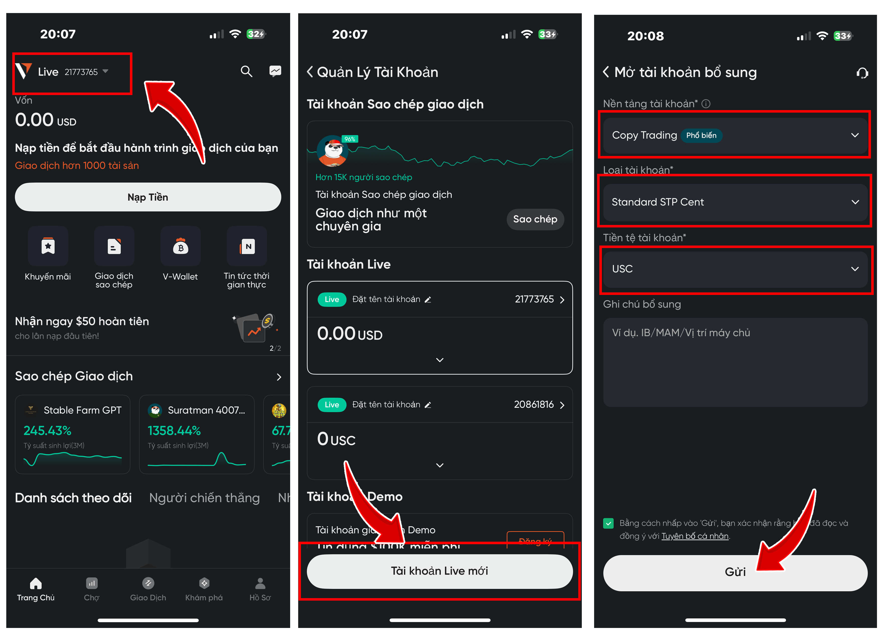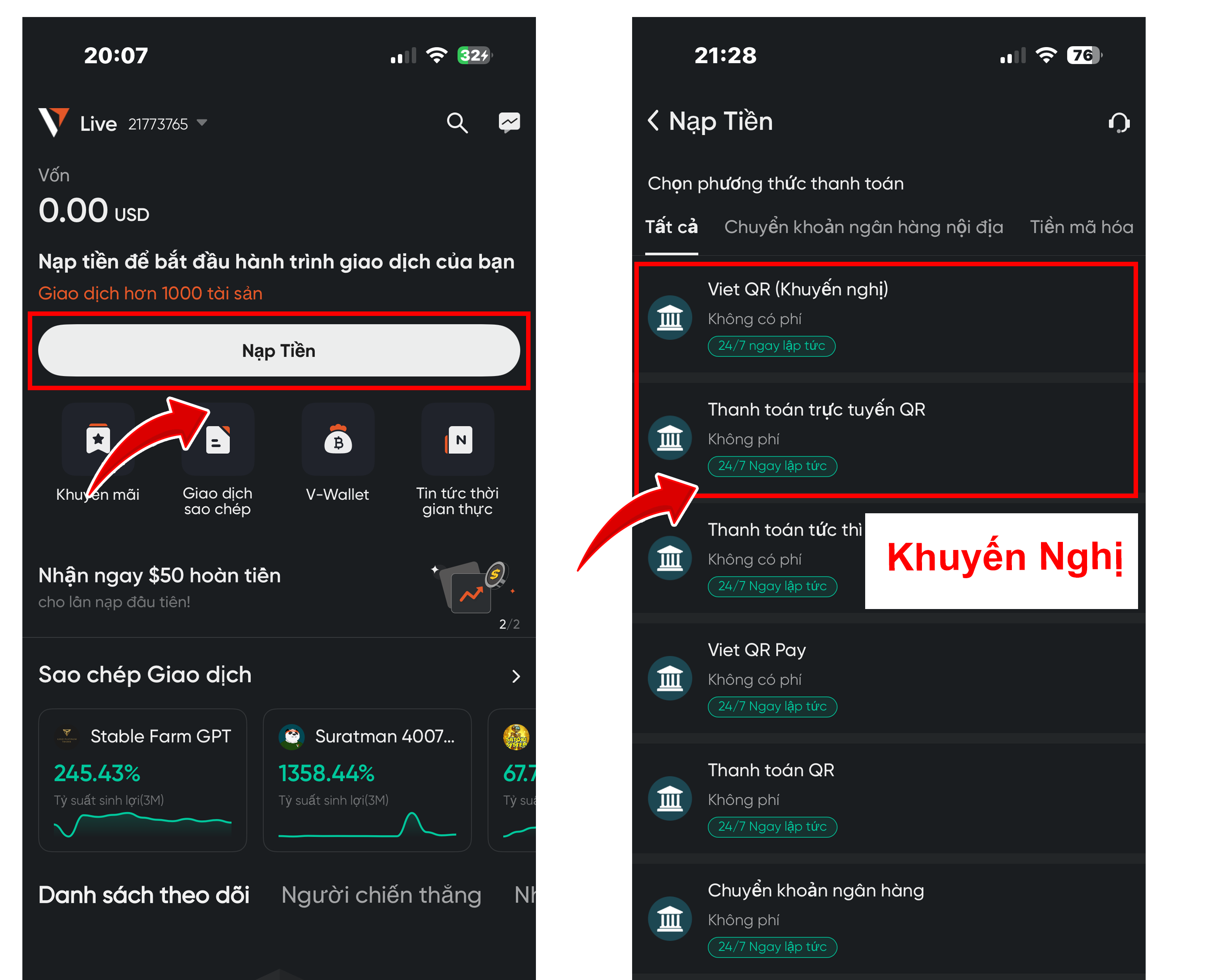 - Nạp tiền vào tài khoản để Copy Trade