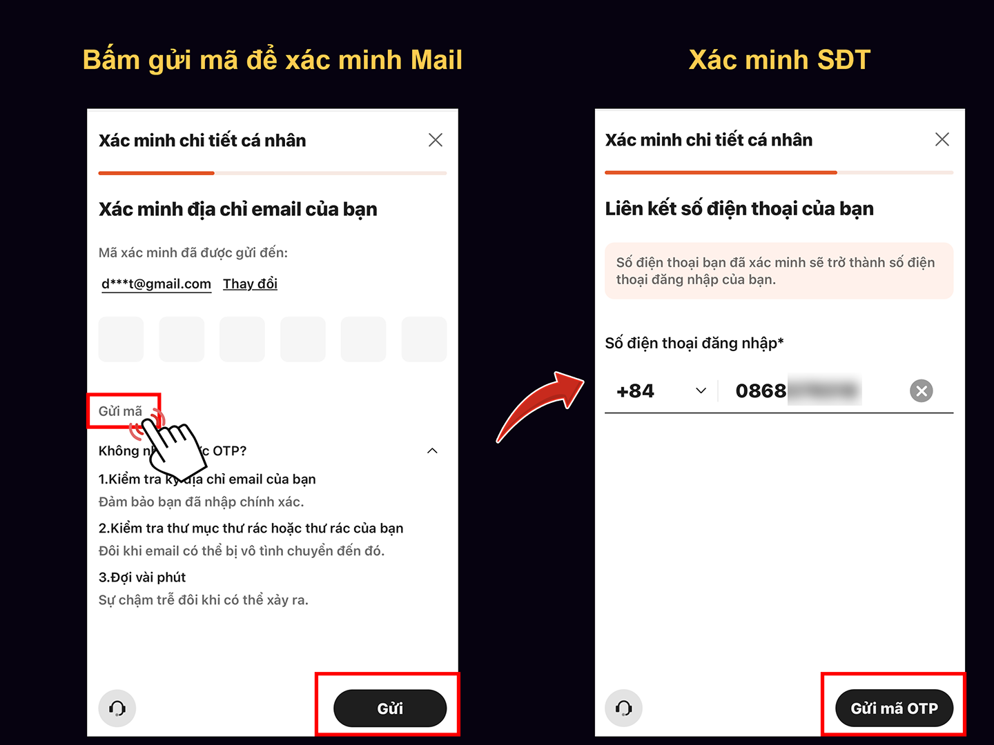 - Xác nhận mail và số điện thoại