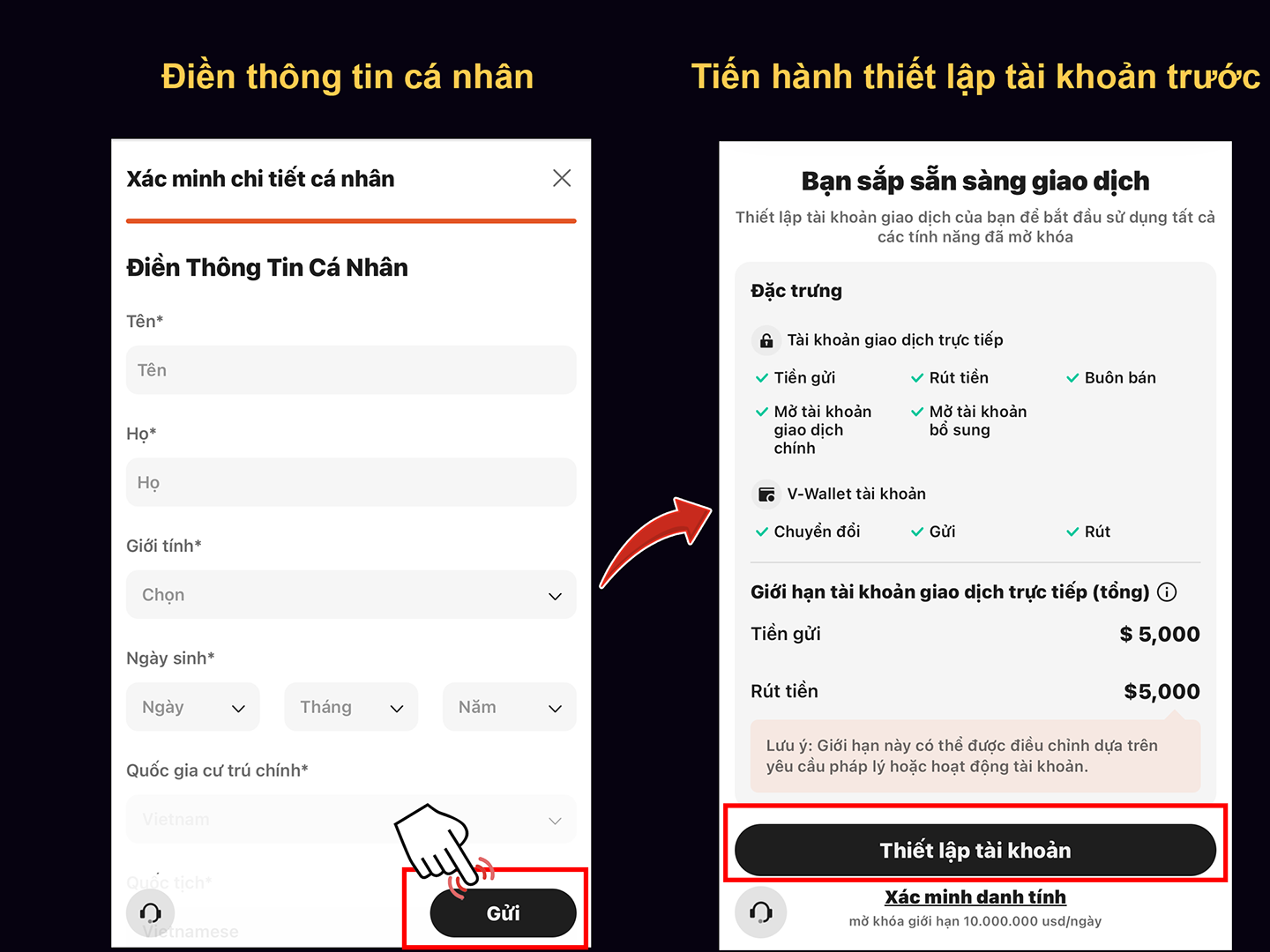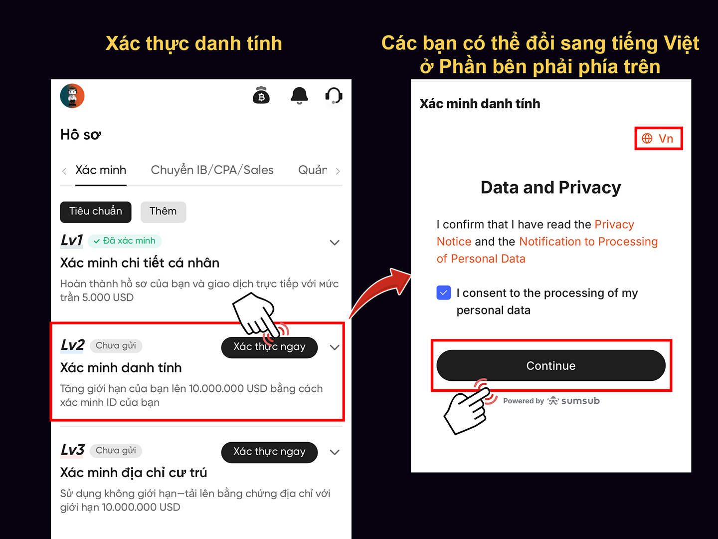 - Tiến hành xác minh danh tính