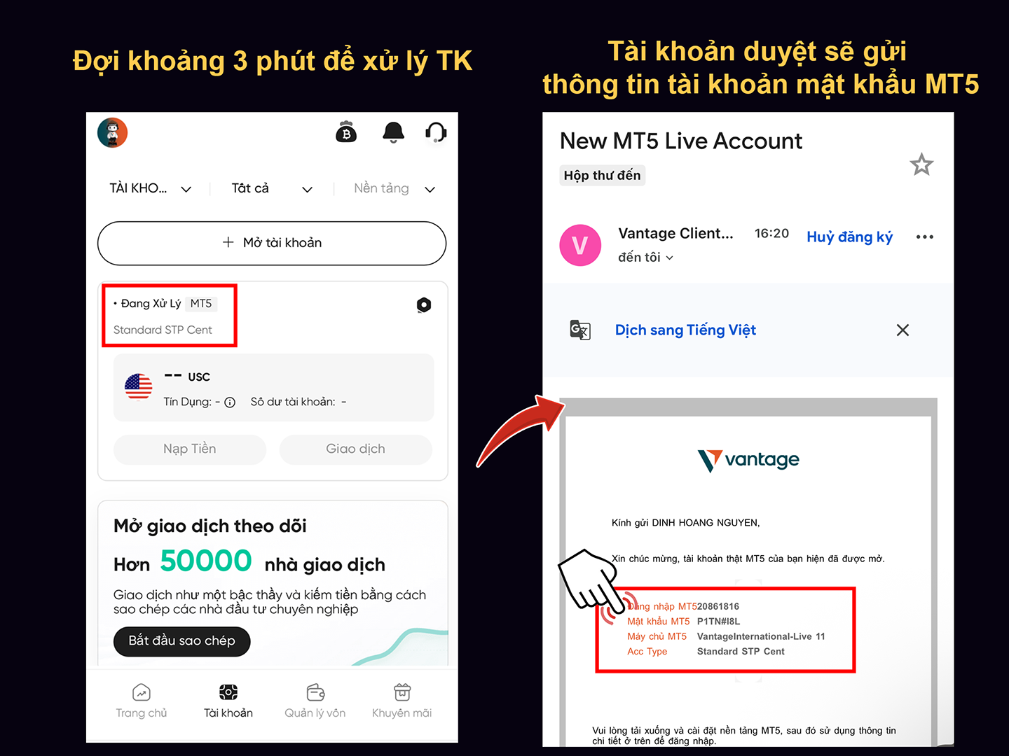 - Đợi Vantage xử lý tài khoản khoảng 3-5 phút