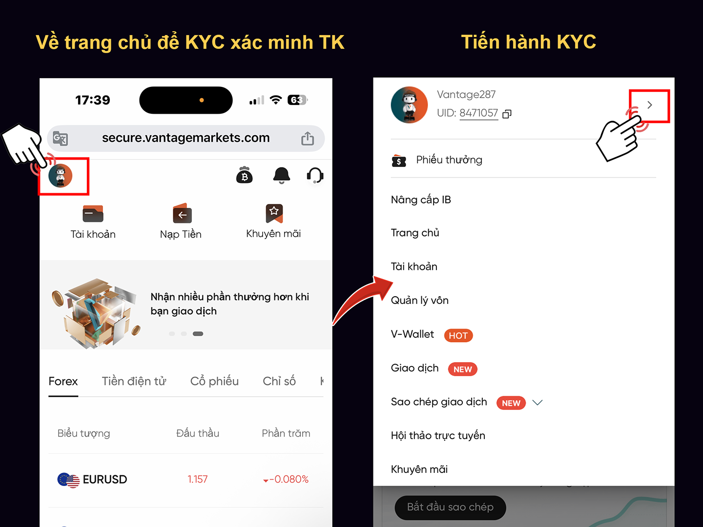 - Tiến hành KYC tài khoản